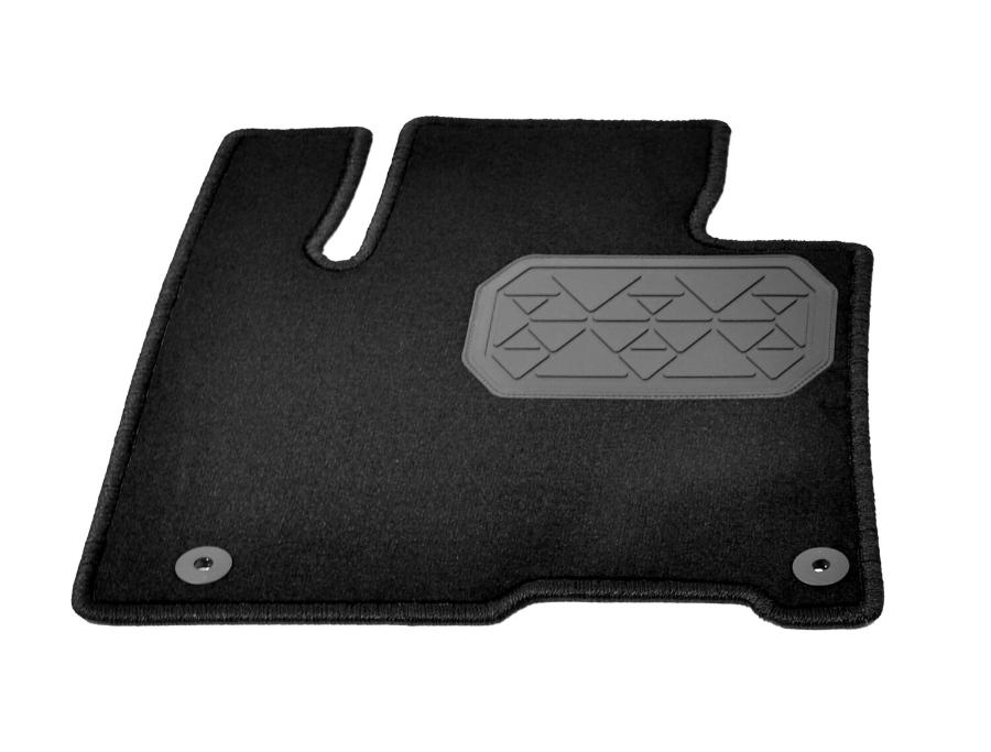 Коврик надежно фиксируется, обеспечивает свободный доступ к педалям и абсолютно безвреден. Текстильные ковры стойки к истиранию, кроме того рабочая зона водительского ковра усилена подпятником, что увеличивает срок службы. К тому же они не боятся высоких и низких температур, не становятся хрупкими и не размягчаются.