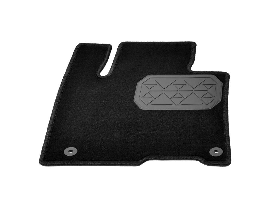 Коврик надежно фиксируется, обеспечивает свободный доступ к педалям и абсолютно безвреден. Текстильные ковры стойки к истиранию, кроме того рабочая зона водительского ковра усилена подпятником, что увеличивает срок службы. К тому же они не боятся высоких и низких температур, не становятся хрупкими и не размягчаются.
