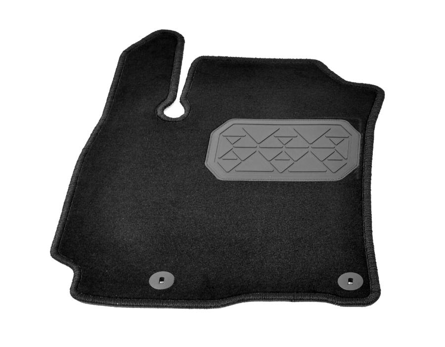 Коврик надежно фиксируется, обеспечивает свободный доступ к педалям и абсолютно безвреден. Текстильные ковры стойки к истиранию, кроме того рабочая зона водительского ковра усилена подпятником, что увеличивает срок службы. К тому же они не боятся высоких и низких температур, не становятся хрупкими и не размягчаются.