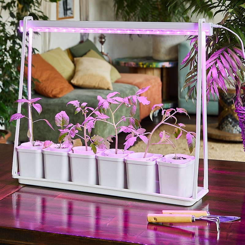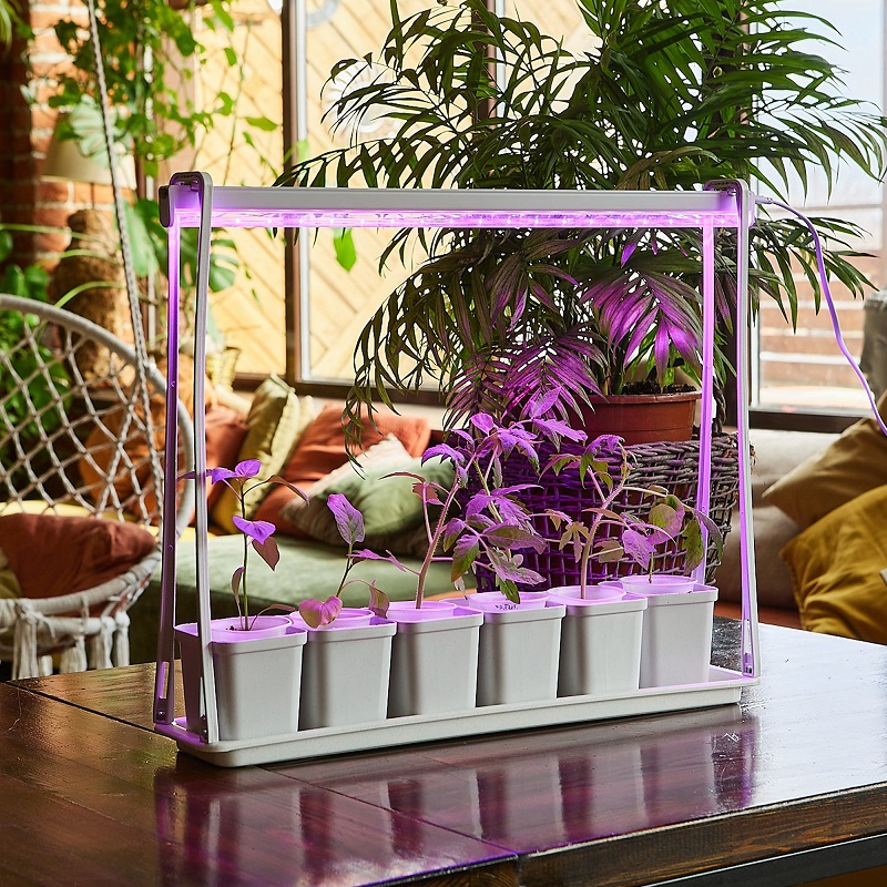 Ультрабюджетный набор для выращивания растений "MINIGARDEN" ULT-P56-10W/SPSB IP20 MARBLE ECONOM от Uniel. Комплект состоит из пластикового каркаса с поддоном на 6 кашпо под рассаду, фитосветильника ULI-P26-10W/SPSB, сетевого кабеля и крепежных изделий. Светодиодный светильник для растений из набора имеет сине-красный спектр SPSB, который предназначен для досветки для ускорения роста рассады и стимулирования цветения. Мощность фитосветильника составляет 10 Вт, класс энергосбережения А+, длина сетевого провода – 1,2 м. Срок службы фитосветильника - 30000 часов. Набор легкий и простой в сборке. Размер собранной подставки 544х116х466 мм, кашпо - 95х80х98. Вес 850 г.Характеристики: