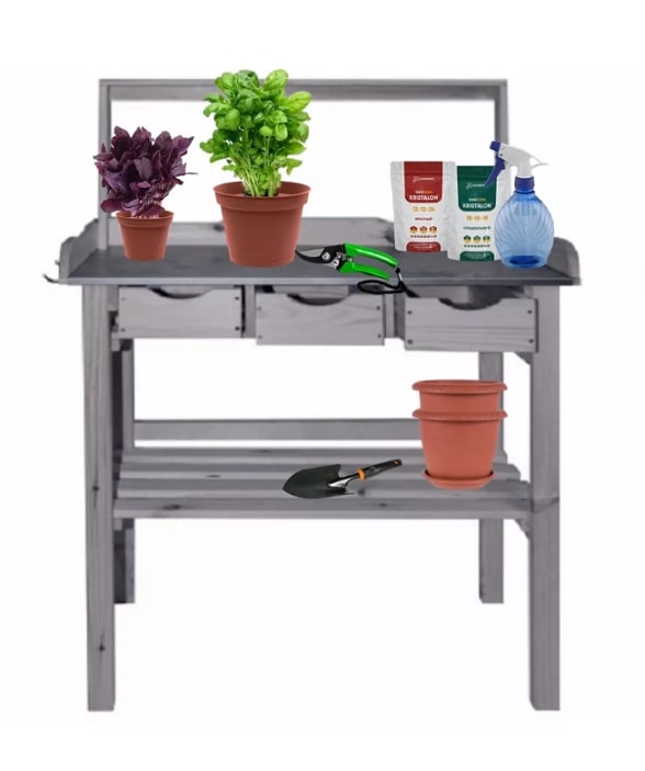 Стол для рассады деревянный предназначен для пересадки цветов, подготовки рассады, микрозелени. На нем можно разместить поддоны с саженцами, цветочные горшки, мини-парники, инструменты и аксессуары для рассады. Столешница выполнена из массива сосны защищена оцинкованной поверхностью, что позволяет осуществлять сортировку овощей и промывку корнеплодов непосредственно на вашем садовом участке и просушку их на реечной полочке.Дополнительная полка в низу позволяет использовать стол садовый как напольную подставку стеллаж для растений, а ящики и крючки сбоку — экономить пространство на вашей мастерской, балконе, террасе.