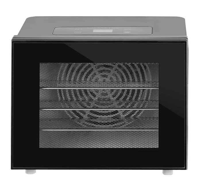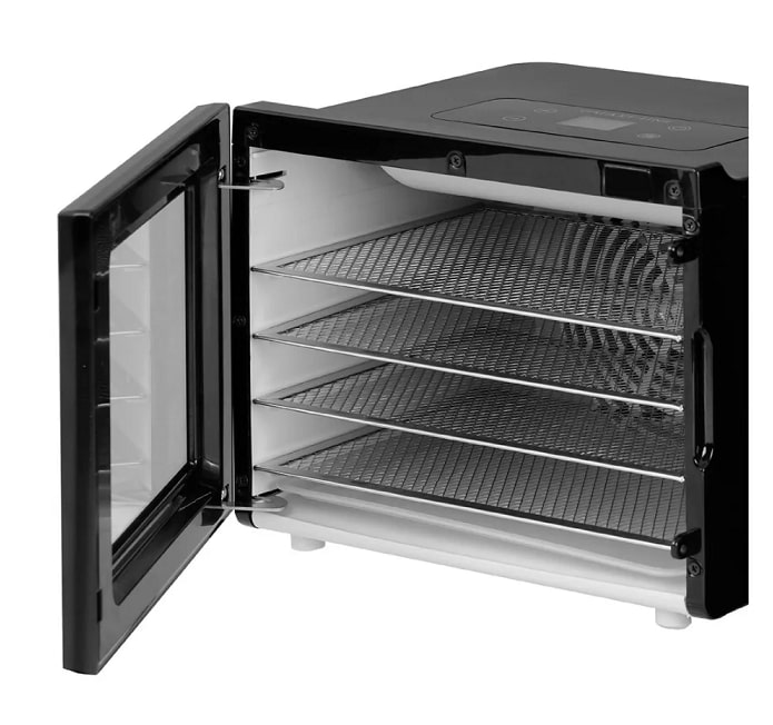 Прозрачная дверца позволяет наблюдать за ходом сушки и состоянием продуктов.