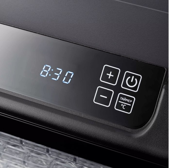 На сушилке можно установить температуру сушки в диапазоне 35-70 °С с шагом в 5 градусов. Сушилка оснащена таймером до 19,5 часов с шагом 30 минут.
