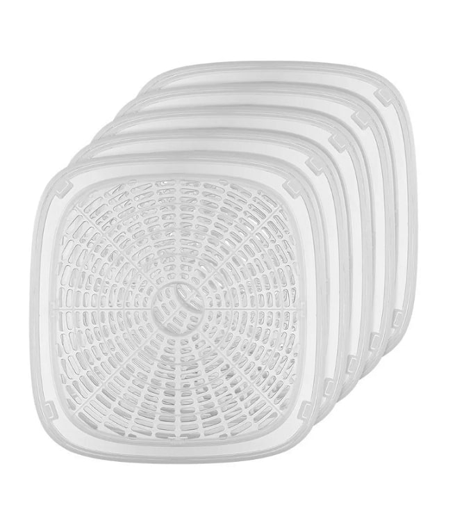 Сушилка Kitfort KT-1990 имеет в комплекте 5 поддонов из прозрачного пластика, вы можете регулировать их по высоте благодаря специальным выступам.