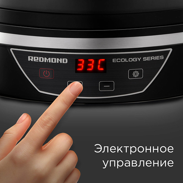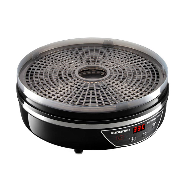 Электросушилка позволяет заготавливать овощи и фрукты без использования консервантов с минимальной потерей полезных веществ, а также сушить лекарственные растения и пряные травы. .На панели управления сушилки для овощей и фруктов Redmond FD1102 расположены 4 сенсорные кнопки, чтобы включить и выключить сушилку, установить время и температуру. Текущее состояние дегидратора отображается на ярком LED-дисплее. Вы можете изменить температуру прямо в процессе сушки.