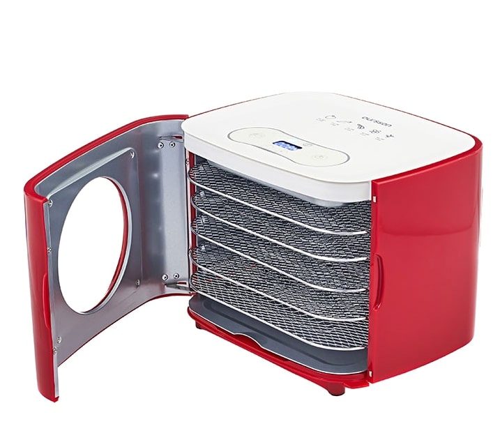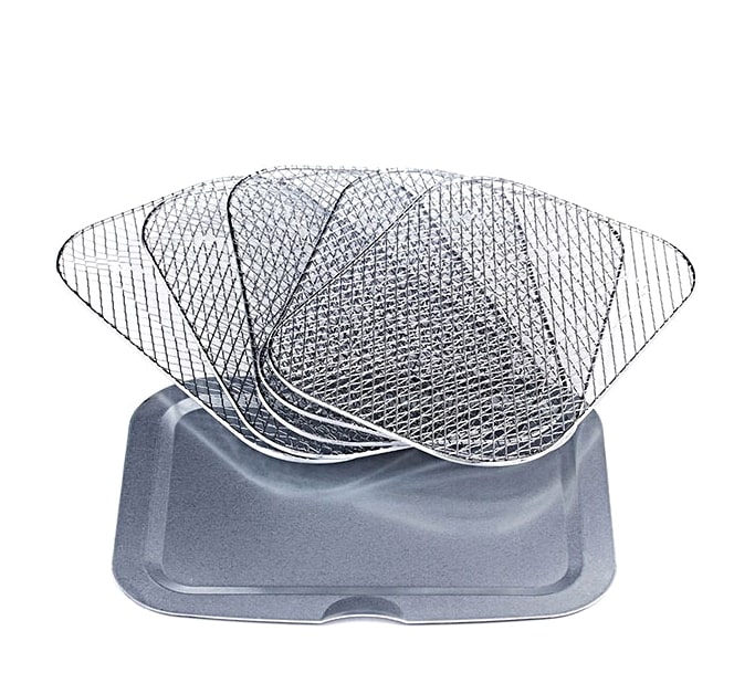 В комплект входят 5 решеток из нержавеющей стали для сушки и поддон для крошек; дверца имеет смотровое окошко из закаленного стекла, позволяющее наблюдать за процессом приготовления.