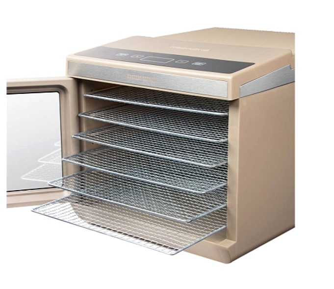 Сушилка REDMOND FD1105 — компактное устройство в корпусе бежевого цвета, незаменимое для высушивания фруктов, овощей, грибов, засушивания хлеба и вяления мяса. Имеет 6 уровней-полок и 12 съемных поддонов — для сушки трав и пастилы. Сушилка оснащена таймером на 72 часа, защитой от перегрева и имеет широкий температурный диапазон от 35 до 70 °C.Вентиляционное отверстие, из которого выходит горячий воздух, расположено в стенке сушилки. Так все продукты на 6 уровнях сушатся равномерно при одинаковой температуре, в отличие от сушилок, где воздух поступает снизу и продукты сушатся снизу быстрее, чем наверху, что ухудшает вкус плодов.