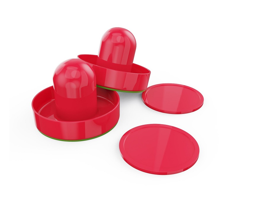Диаметр бит составляет 65 мм, шайб — 55 мм. В комплект входят: 2 шайбы, 2 биты и механические счётчики очков — всё, что нужно для начала игры. Вы сможете устроить настоящий турнир дома или в компании друзей!