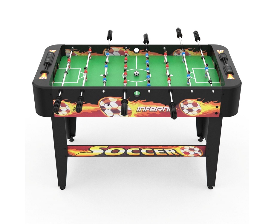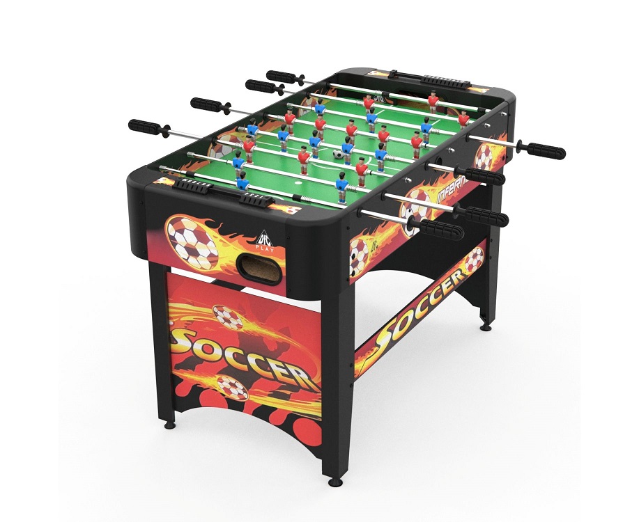 Игровой стол-футбол DFC INFERNO SB-ST-29398S для домашнего использования. Боковые стороны из МДФ ламинированным ПВХ высотой 19,5 см и толщиной 12 мм. Стороны со стороны игроков высотой 19,5 см и толщиной 9 мм. Телескопические стержни диаметром 13 мм с хромированным покрытием. В комплекте 2 футбольных мяча 31 мм диаметром.