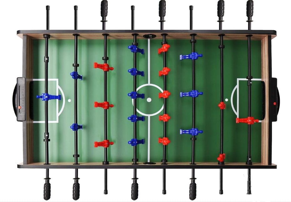 - Штанги управления с резиновыми рукоятками вращаются плавно и легко, обеспечивая полный контроль над игроками и точность передач и ударов.