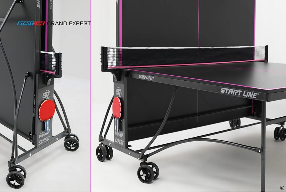 Модель Grand Expert Black укомплектована удобным держателем для ракеток и мячей и встроенной сеткой, не требующей демонтажа при складывании. Начать игру можно в любое время, ведь все необходимое оборудование всегда под рукой.