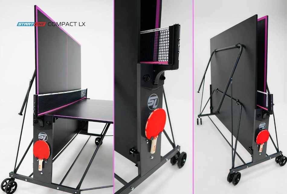 Модель Compact-LX Black укомплектована удобным держателем для ракеток и мячей, а также встроенной сеткой, не требующей демонтажа при складывании. Начать игру можно в любое время, ведь все необходимое оборудование всегда под рукой.
