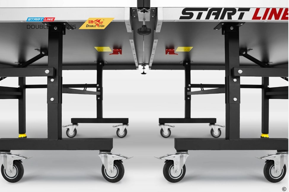 Восемь обрезиненных маневренных транспортировочных колес диаметром 100 мм обеспечивают легкость перемещения стола. Колеса оснащены стопорами, которые задают жесткую фиксацию нужного положения и стабильность стола во время игры.
