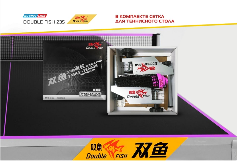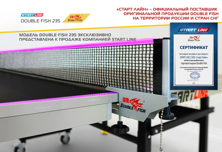 Теннисный стол Double Fish 235 - воплощение качества и стиля в индустрии профессионального тенниса, идеальное решение для оснащения спортивных клубов и тренировочных залов.