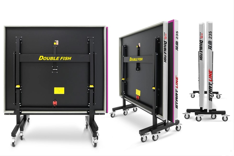 Теннисный стол Double Fish 235 отличает комфортная и безопасная система складывания. Модель в сложенном виде очень компактна, что дает важные эксплуатационные преимущества: минимум места в положении хранения и удобство манипуляций при транспортировке. Уникальная конструкция позволяет установить стол в положение PlayBack для одиночной игры.