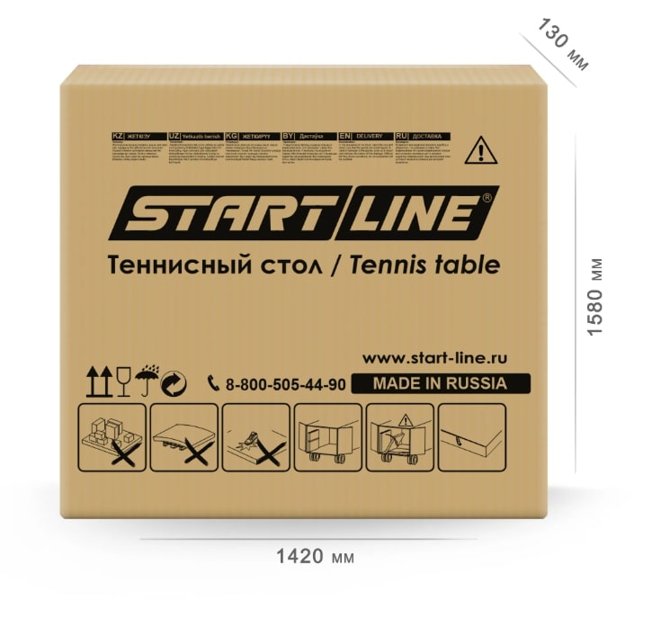 Размер стола в рабочем положении: 274 см в длину, 152,5 см в ширину и 76 см в высоту, что соответствует стандарту ITTF.