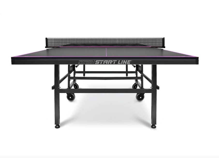 Стол укомплектован столешницей из прочного материала ЛДСП. Толщина столешницы 22 мм обеспечивает предсказуемость и точность отскок мяча, что позволяет использовать стол для тренировочных занятий в спортивных клубах. Меламиновое покрытие надежно защищает столешницу от появления трещин и сколов, а кромка из ПВХ толщиной 0,45 мм и металлический кант с полимерным покрытием продлевают срок службы стола даже в условиях интенсивной эксплуатации.Усиленная рама и двойные раскосы надежно фиксирующими стол, гарантирует идеальную стабильность во время игры и тренировок.