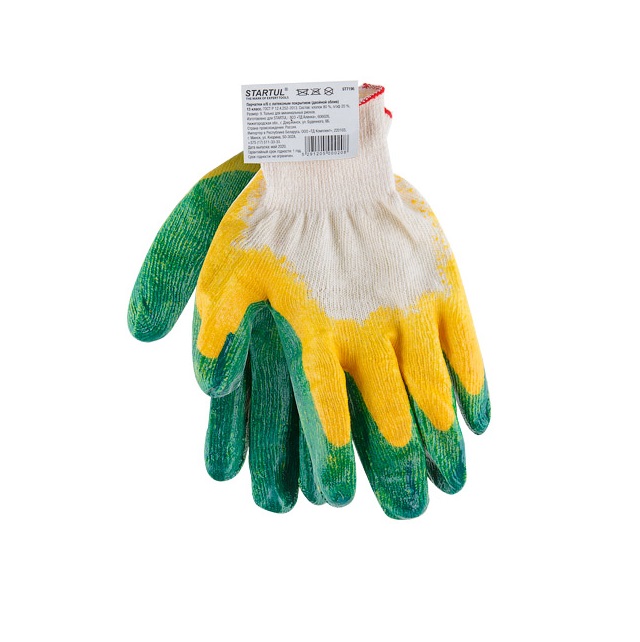 Перчатки х/б, латексное покрытие (двойной облив), 13 класс STARTUL