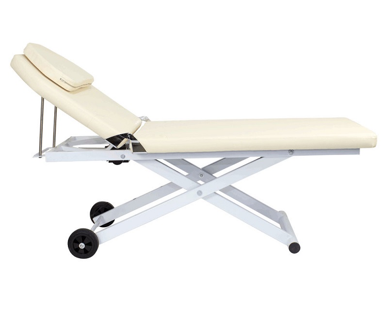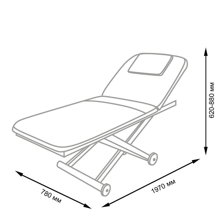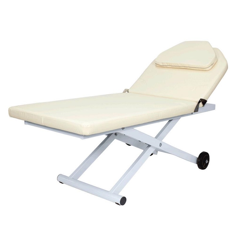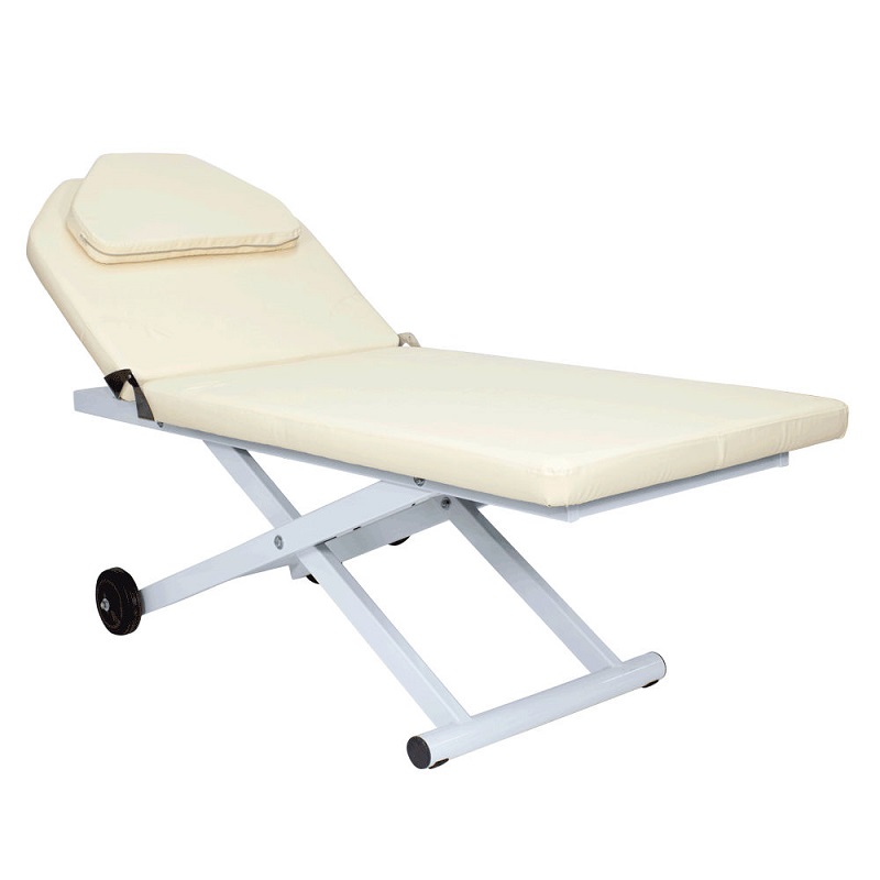 Такая конструкция обеспечивает устойчивость кушетки, а также позволяет легко перемещать и поворачивать ее при необходимости. Кушетка комплектуется электроприводом с одним мотором, при помощи которого мастер сможет без дополнительных усилий регулировать высоту, не прерывая рабочий процесс.