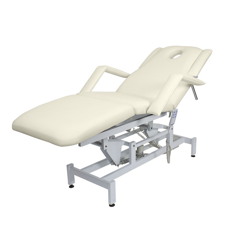 Кушетка массажная МД–849 электропривод, 3 мотора на подпятниках — это профессиональное оборудование. Она разработана для применения в массажном или косметологическом кабинете высокого уровня. Мягкая часть кушетки разделена на три сегмента: сиденье, спинка, элемент для ног. Это значительно повышает комфорт при использовании и обеспечивает необходимую функциональность во время работы. В спинке есть специальный вырез для лица. Для удобного расположения рук по время массажа предусмотрены навесные подлокотники, регулируемые по высоте.В данной модели установлено 3 мотора для подъема кушетки, регулировки спинки и наклона сиденья. При помощи компактного и удобного пульта мастер сможет легко настраивать кушетку для конкретной процедуры. Для обшивки мягких деталей применяется современный обивочный материал — качественная экокожа.