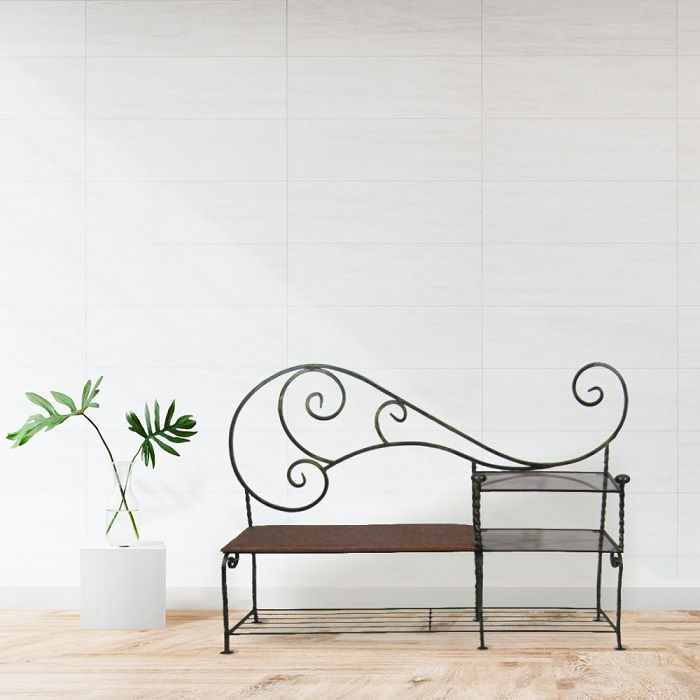 Компактная банкетка с полками в два яруса не занимает много места и прекрасно впишется в интерьер.
