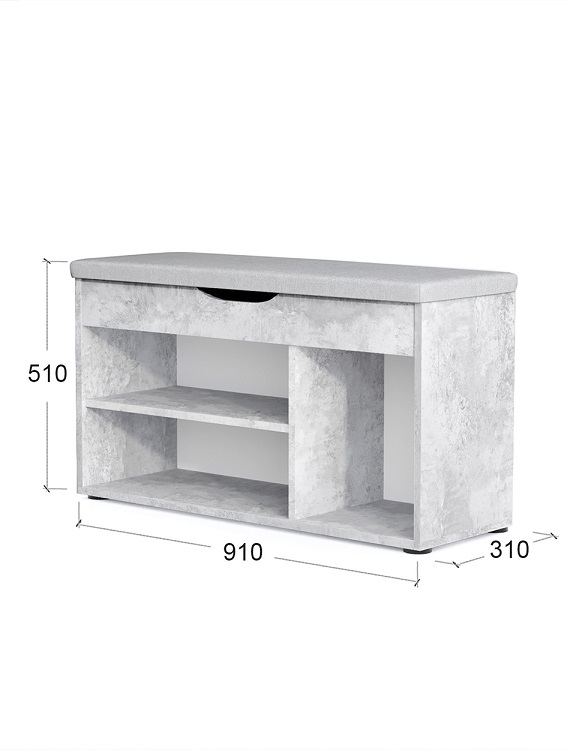 Комфортабельная обувница Норд с мягким сиденьем, это идеальное решение для обустройства вашего дома, квартиры или дачи, а также для размещения в гостиницах.Основание обувницы выполнено из прочного ДСП и оснащено пластиковыми ножками для предотвращения возможного разбухания. Обувница предлагает отличное решение для хранения обуви и повседневных вещей, ведь она оснащена двумя полками, на которых легко разместятся до 6 пар обуви, и мягким сиденьем из плотного пенополиуретана для комфортного переобувания. Под сиденьем находится просторный ящик с интегрированной ручкой для хранения мелочей.