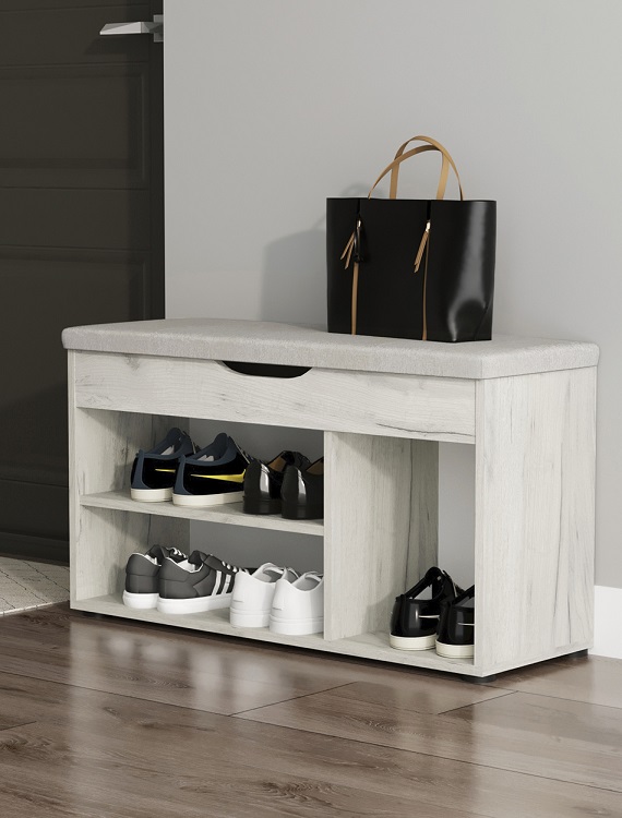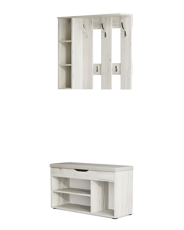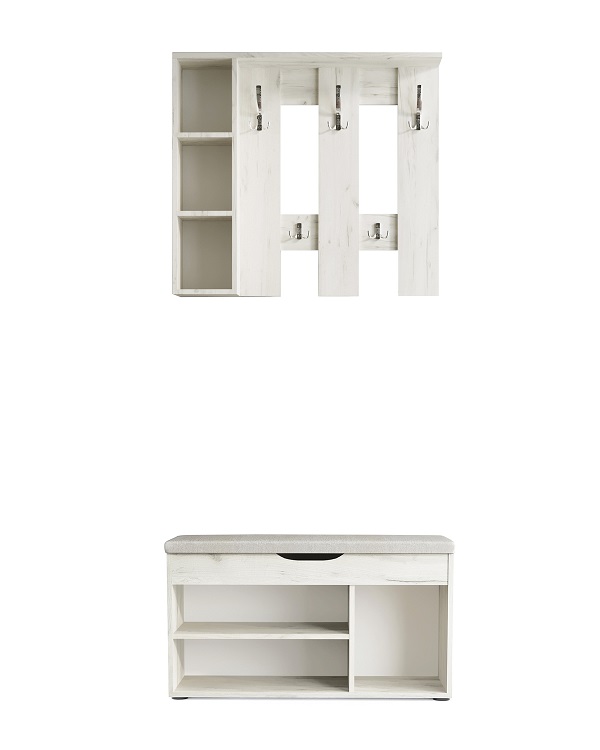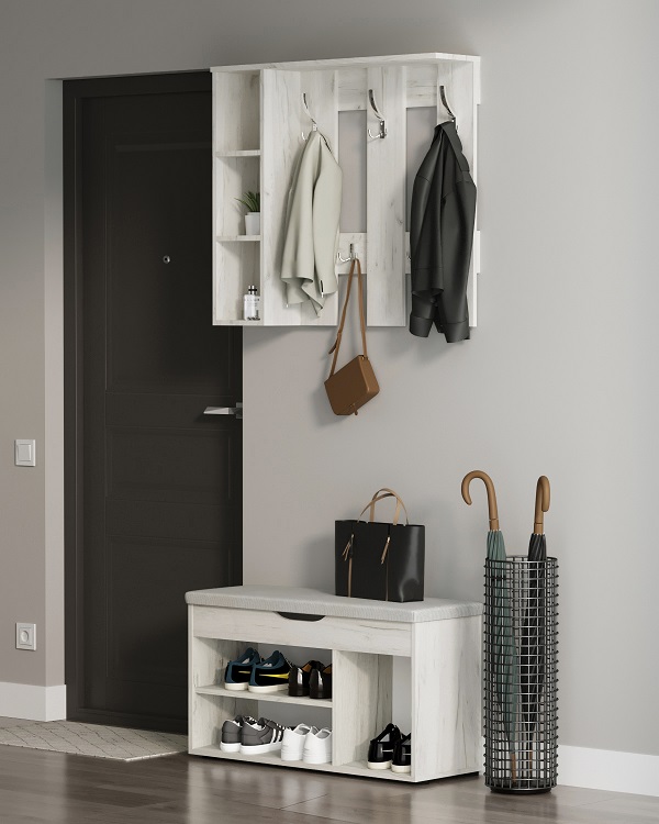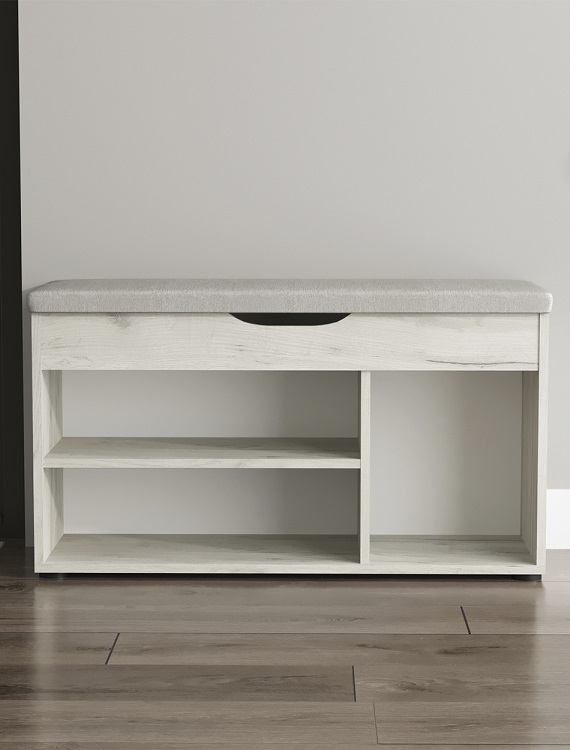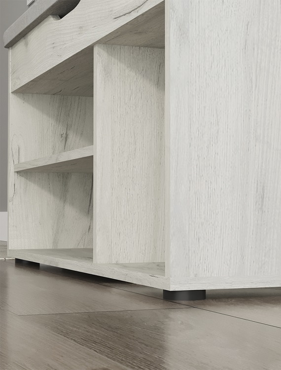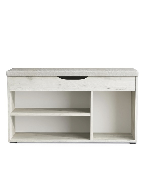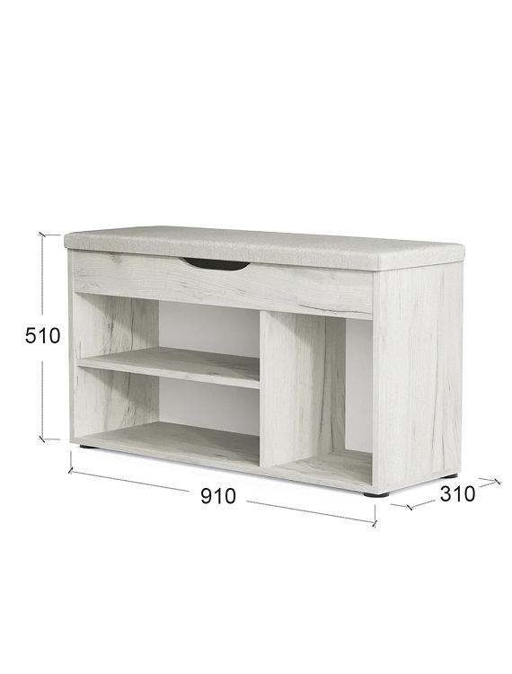 Комфортабельная обувница Норд с мягким сиденьем, это идеальное решение для обустройства вашего дома, квартиры или дачи, а также для размещения в гостиницах.Основание обувницы выполнено из прочного ДСП и оснащено пластиковыми ножками для предотвращения возможного разбухания. Обувница предлагает отличное решение для хранения обуви и повседневных вещей, ведь она оснащена двумя полками, на которых легко разместятся до 6 пар обуви, и мягким сиденьем из плотного пенополиуретана для комфортного переобувания. Под сиденьем находится просторный ящик с интегрированной ручкой для хранения мелочей.