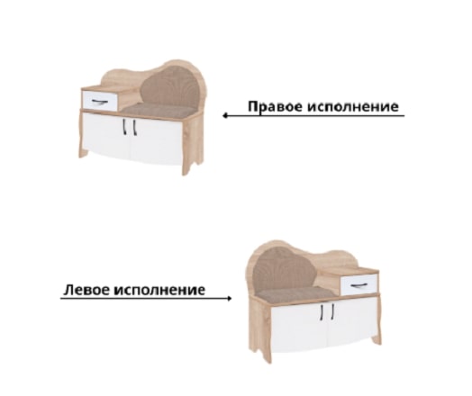 Скамья ВА 012.6 - функциональный комфорт Вашей прихожей! Скамья оборудована выдвижным ящиком и большой нишей для обуви закрытой двумя распашными дверцами.Скамья выпускается в левом или правом исполнении.