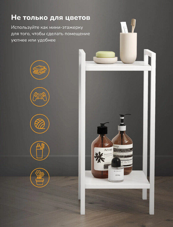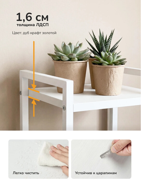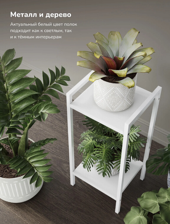 - 2 просторные полки для крупных и средних горшков.