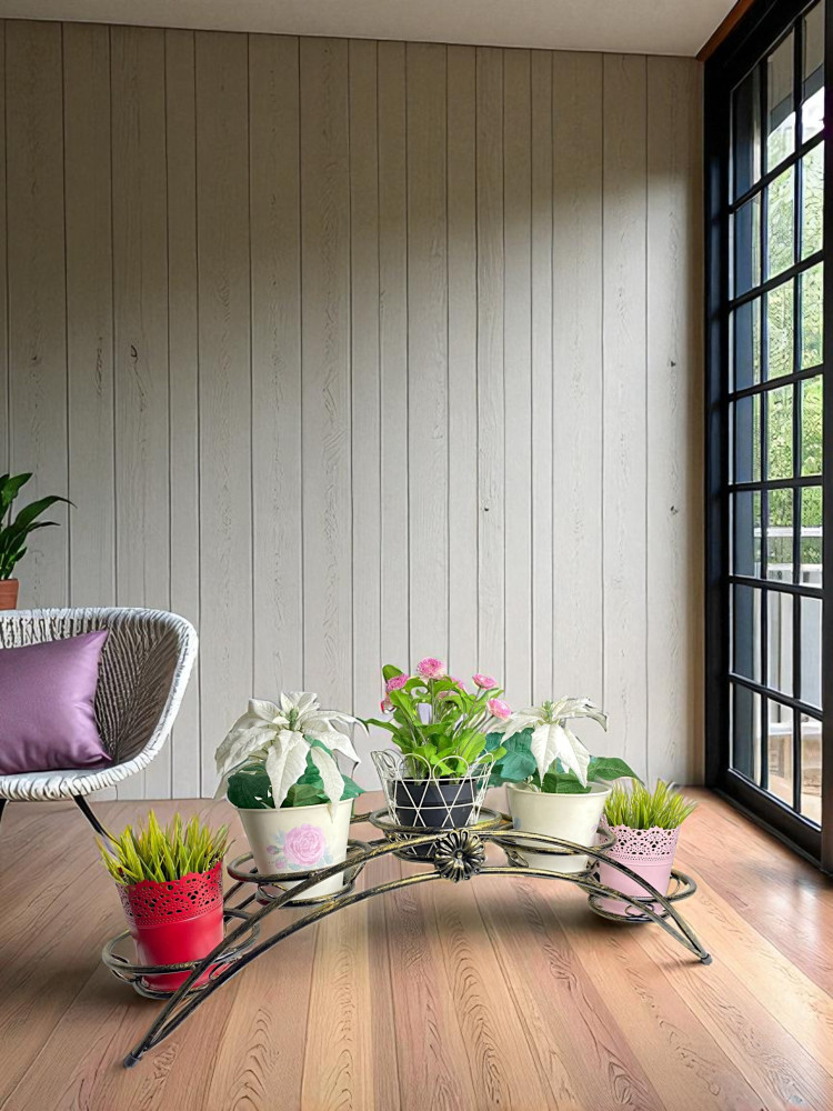 Подставка для цветов и растений напольная металлическая.Самый невзрачный интерьер смогут оживить комнатные растения в горшках и декоративные кашпо. Цветы прекрасный предмет декора любого пространства, они создают уют и атмосферу тепла. Высокая полка для цветов отличное решение для вьющихся растений или рассады на замену обычному подоконнику. Подставка для цветов и растений изготовлена из металла. Металл окрашен порошковой краской.