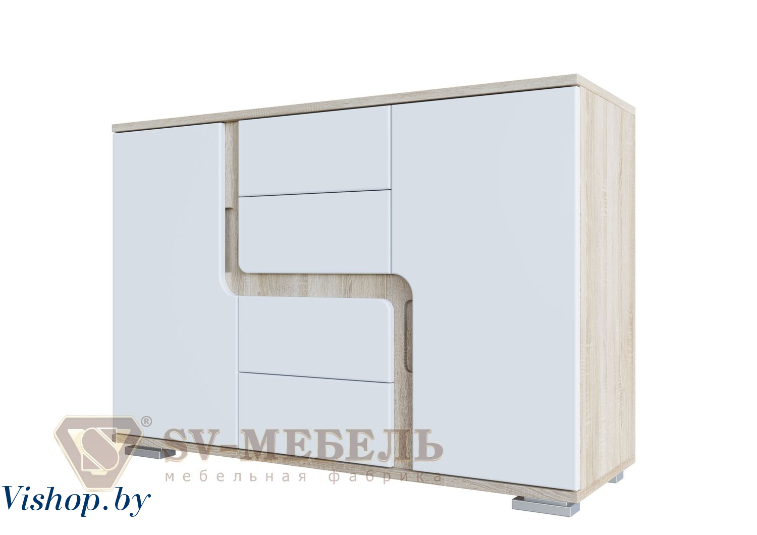 Комод Гостиная Нота 25 Дуб Сонома/Белый глянец