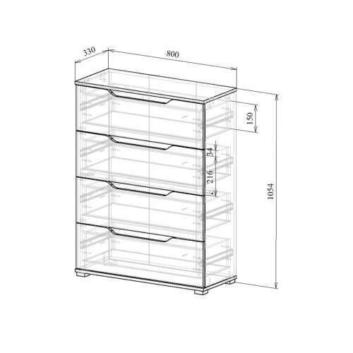 Нейт-34 - компактный неглубокий комод глубиной всего 330 мм и шириной 800 мм с четырьмя выдвижными ящиками. Роль ручки в комодах "Нейт" играет фигурный выпил в фасаде. Благодаря универсальной конструкции ящиков, при сборке вы сможете самостоятельно выбрать понравившийся вам вариант компоновки фасадов (предлагаем вам 2 варианта). Выдвижные ящики устанавливаются на бесшумные полновыдвижные шариковые направляющие. В качестве опор комодов выступают прямоугольные пластиковые ножки окрашенные в цвет "алюминий", с возможностью регулировки по высоте при неровных полах.Изделие изготовлено из качественной ламинированной плиты ДСП. Торцы изделия обработаны надёжной ударопрочной кромкой ПВХ .Декоративные заглушки в тон мебели для скрытия технологических отверстий.