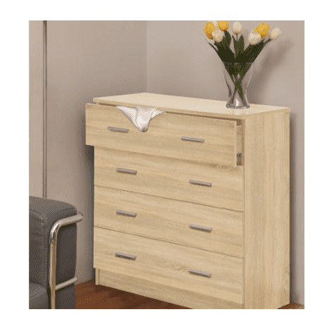 На первый взгляд комод выглядит небольшим. Однако это обманчивое представление. Его внутреннее пространство дает возможность рационально использовать каждый сантиметр. Это достигается за счет выдвижных ящиков, в которые можно поместить разные предметы.
