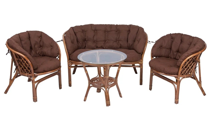 Комплект «Багама» - это высококачественная плетёная мебель из ротанга, которая прекрасно впишется в интерьер как загородного дома или дачи, так и городской квартиры. В состав данного комплекта входят два удобных кресла, софа и кофейный столик. Кресла эргономичной формы с подлокотниками и спинкой снабжены большими мягкими подушками с увеличенной боковой частью закрывающей подлокотники.Производитель предусмотрел различные цветовые варианты, благодаря которым ваш интерьер останется гармоничным, даже если основная мебель в помещении не из ротанга. Цвета: натуральный, мед, коньяк, миндаль матовый, орех матовый, молочный шоколад, темно-коричневый, венге, венге матовый, олива.