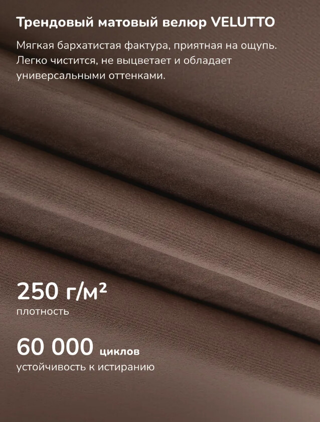 Обивка мягкий велюр легко очищается от пятен и долго сохраняет первозданный вид.