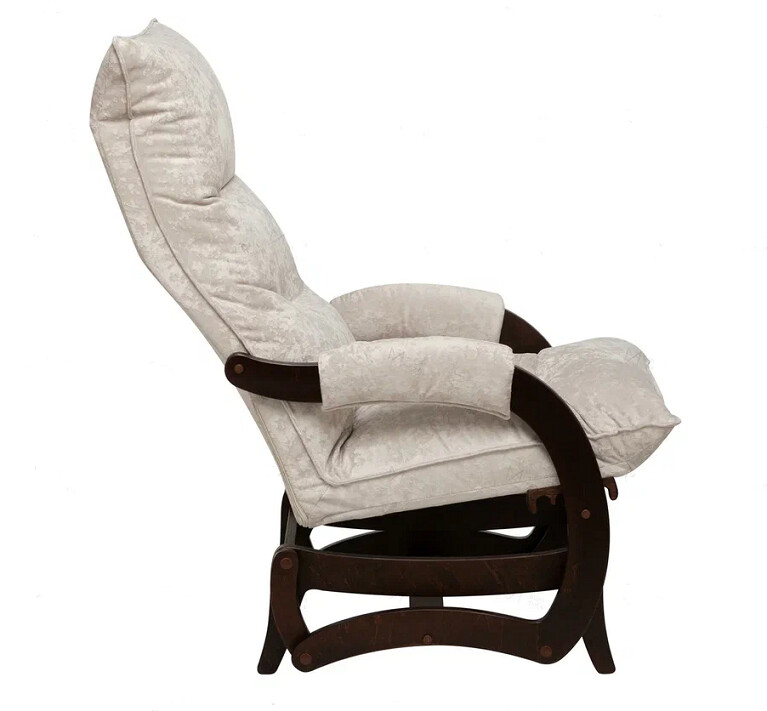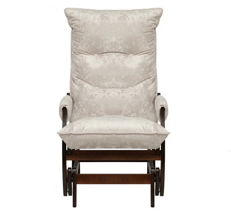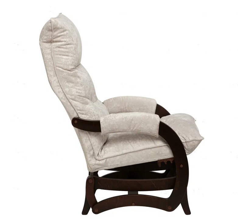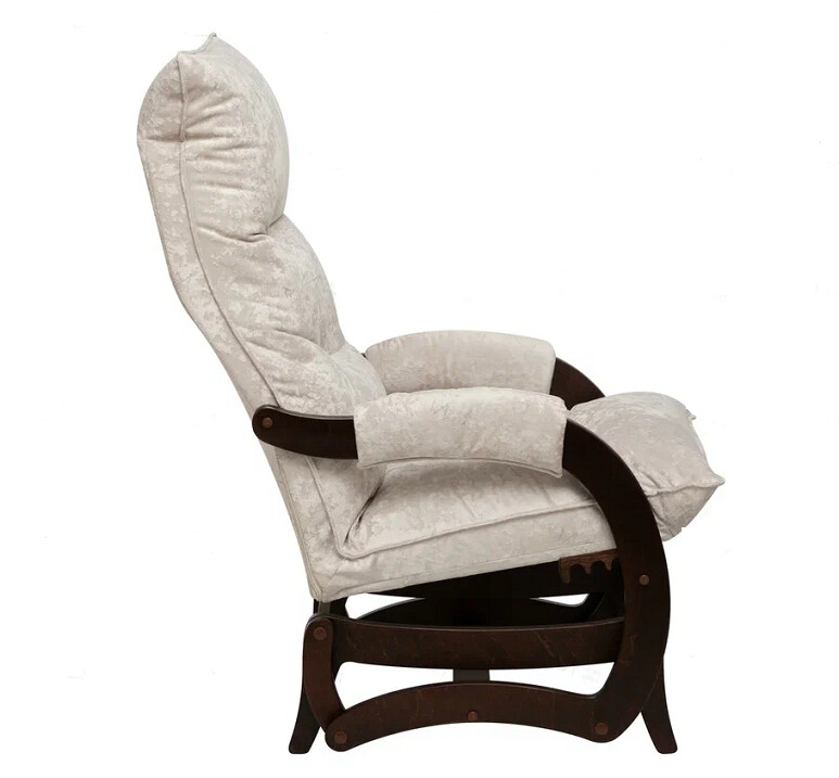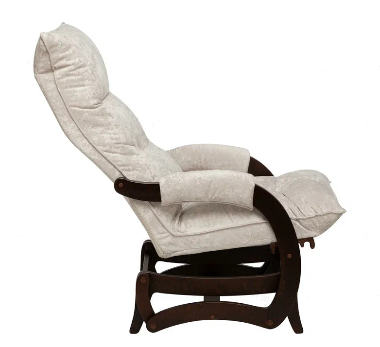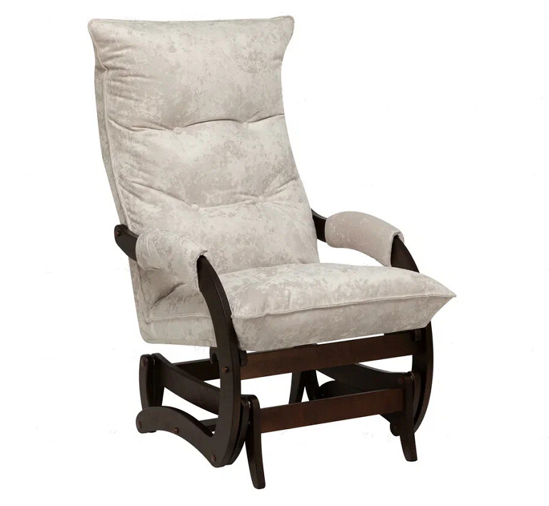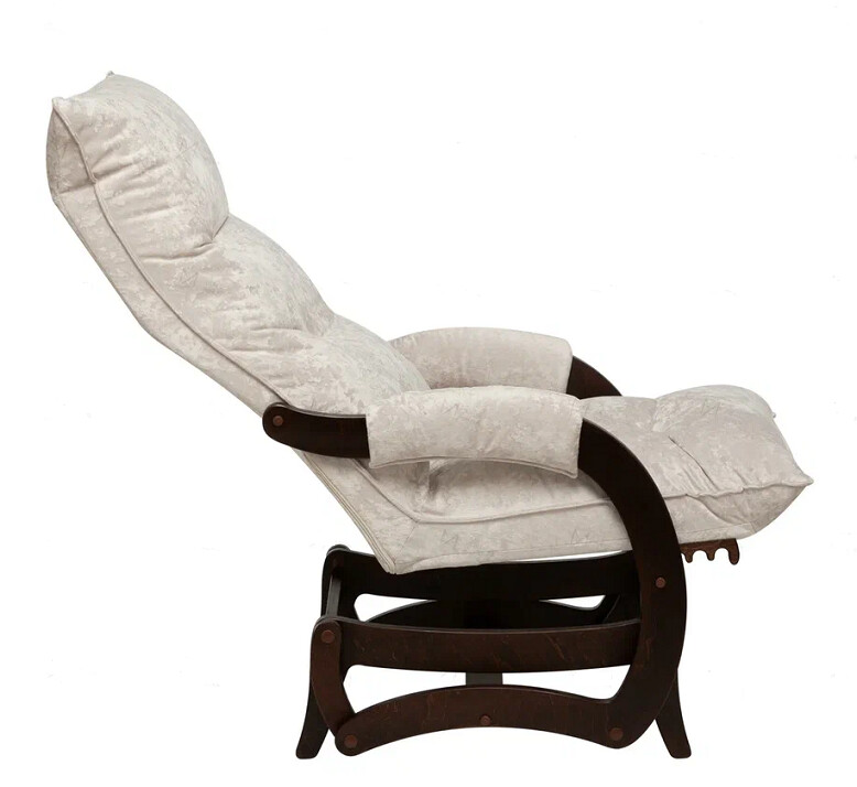 Кресло-маятник Leset Луно превзойдет все ваши ожидания комфорта и стиля. Кресло-качалка с мягкими, уютными подушками и плавным покачиванием станет твоим любимым местом для отдыха. Можно выбрать идеальный угол наклона спинки - кресло предлагает четыре положения наклона: от расслабленного полулежа до удобного вертикального положения (регулируется до 124°). Механизм качания разработан для максимального расслабления. Лёгкие, ритмичные движения помогут успокоиться и забыть о стрессе. Классический силуэт и элегантное сочетание дерева разных оттенков и ткани велюр позволят креслу гармонично вписаться в любой интерьер. Оно станет не только местом отдыха, но и красивым акцентом в доме.Наполнитель из пенополиуретана (ППУ), холкона и синтешара создаёт невероятный комфорт идеально подстраиваясь под форму тела.