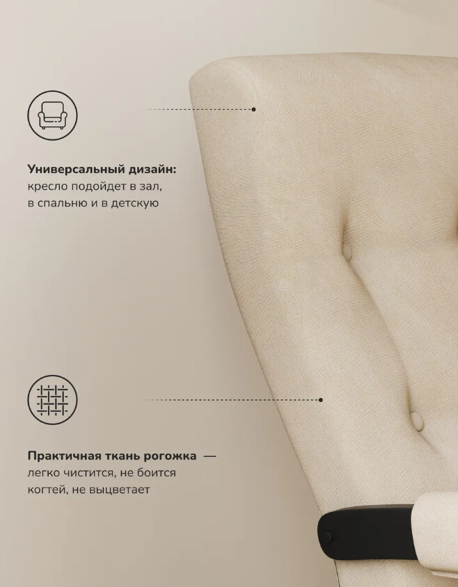 • Универсально для любых интерьеров. Кресло-качалка отлично сочетается с диванами, креслами и другой мебелью дома и на даче.