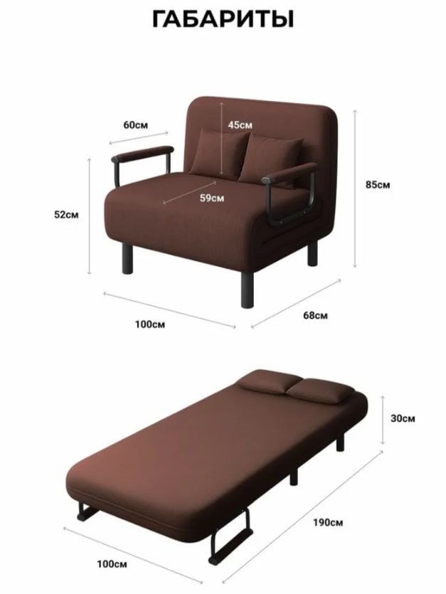 - Ширина спального места в разложенном виде: 100 см