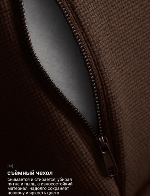 Обивка представлена в различных вариантах цветов. Тканевые чехлы выполнены съемными, что облегчает уход за изделием.