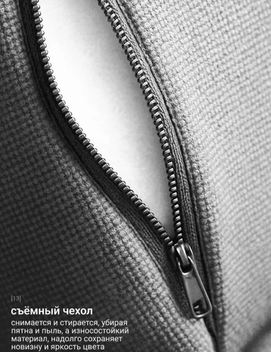 Обивка представлена в различных вариантах цветов. Тканевые чехлы выполнены съемными, что облегчает уход за изделием.
