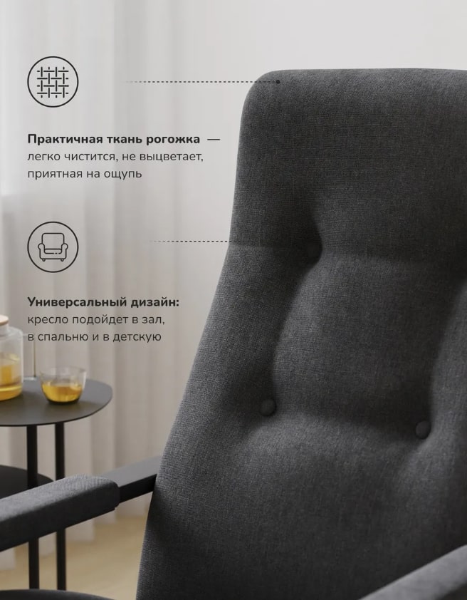 Наше тканевое кресло легко впишется в ваш интерьер, дополняя другую мебель. Оно подходит не только для взрослых, ценящих качество, но и для детей, которые любят играть или отдыхать в уютном кресле. Обивка легко чистится, поэтому «Рей» сохранит привлекательный вид на долгие годы.