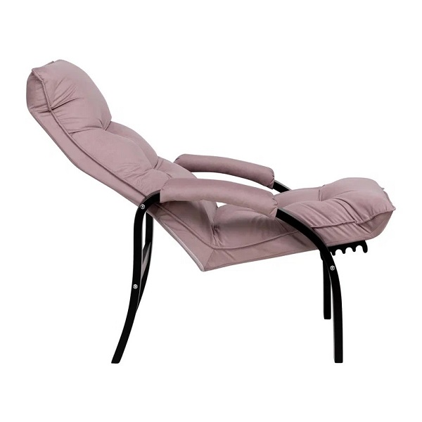 Этим модель напоминает шезлонг, но Левада Leset -полноценное интерьерное кресло для отдыха: современный дизайн, изящный деревянный каркас под итальянским лаком, велюровый чехол, наполнитель из эластичного пенополиуретана. Накладки на подлокотниках снимаются для чистки, спинка декорирована пуговицами.