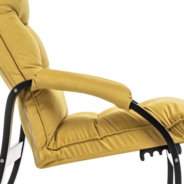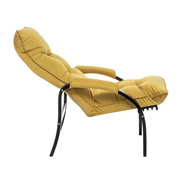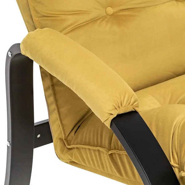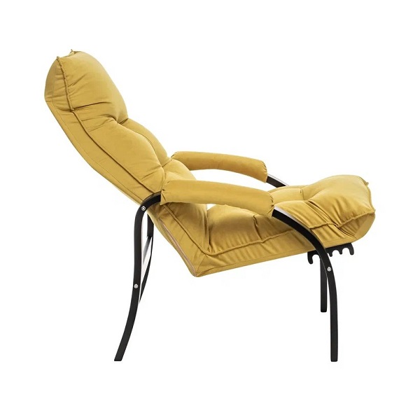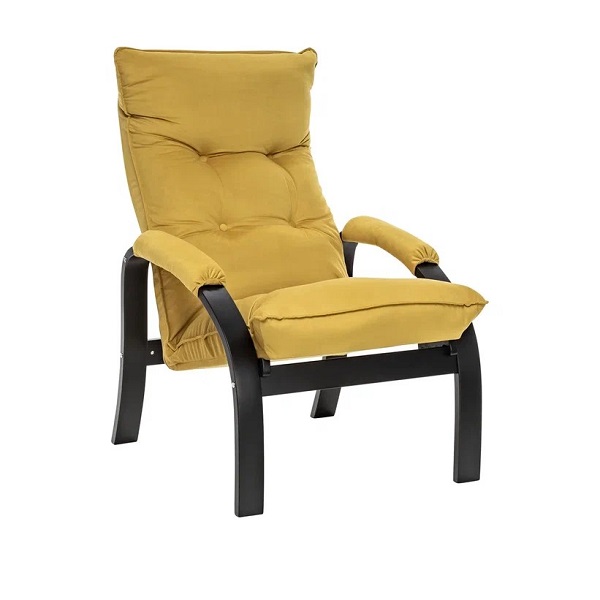 Кресло-стул с подлокотниками и уютным сиденьем уместно в спальне, гостиной, прихожей, на балконе, в закрытой дачной беседке. У основания кресло раскладное оснащено механизмом гребенка, за счет чего одним движением спинка переключается в 4 положения.Этим модель напоминает шезлонг, но Левада Leset -полноценное интерьерное кресло для отдыха: современный дизайн, изящный деревянный каркас под итальянским лаком, велюровый чехол, наполнитель из эластичного пенополиуретана. Накладки на подлокотниках снимаются для чистки, спинка декорирована пуговицами.