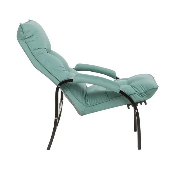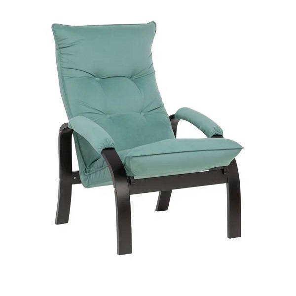 Кресло-стул с подлокотниками и уютным сиденьем уместно в спальне, гостиной, прихожей, на балконе, в закрытой дачной беседке. У основания кресло раскладное оснащено механизмом гребенка, за счет чего одним движением спинка переключается в 4 положения.Этим модель напоминает шезлонг, но Левада Leset -полноценное интерьерное кресло для отдыха: современный дизайн, изящный деревянный каркас под итальянским лаком, велюровый чехол, наполнитель из эластичного пенополиуретана. Накладки на подлокотниках снимаются для чистки, спинка декорирована пуговицами.