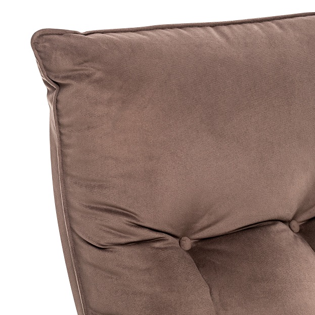 Чехол и мягкие накладки на подлокотниках съемные, выполнены на молнии и на липучках. Для обивки кресла использован практичный материал, сиденье проложено эластичным пенополиуретаном и декорировано пуговицами.