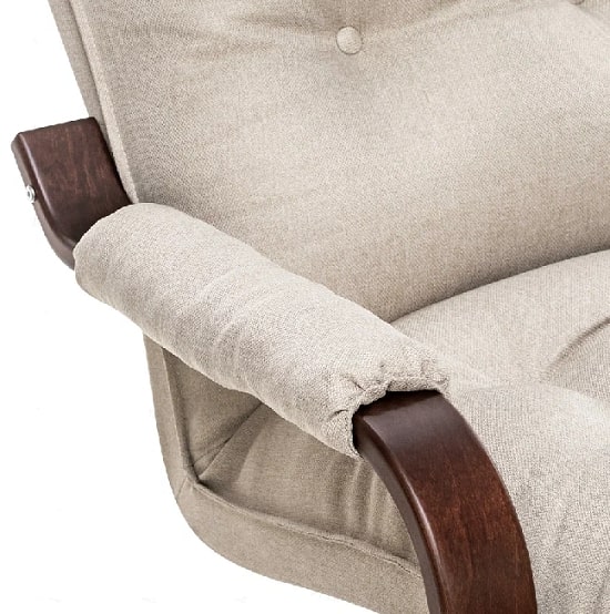 Популярное кресло-раскладушка Оливер украсит гостиную, спальню, прихожую модерн или хай-тек, и станет фишкой зоны отдыха на даче. Гнутоклееные кресла из линейки мягкой мебели Leset узнаваемы по плавным формам и высокой функциональности. Кресло раскладное можно использовать как в квартире, так и в благоустроенной беседке. Одним движением кресло трансформер приводится в положение спинки полулежа или сидя.Силуэт раскладного кресла и механизм переключения напоминает шезлонг, за что кресло-стул называют раскладушкой, но качество наполнителя и обивки, премиальное исполнение основания и покрытие каркасной части итальянским лаком, глубина сиденья дарят чудесное расслабление и здоровье позвоночника. Матрас декорирован обтянутыми материалом пуговицами и боковой окантовкой.