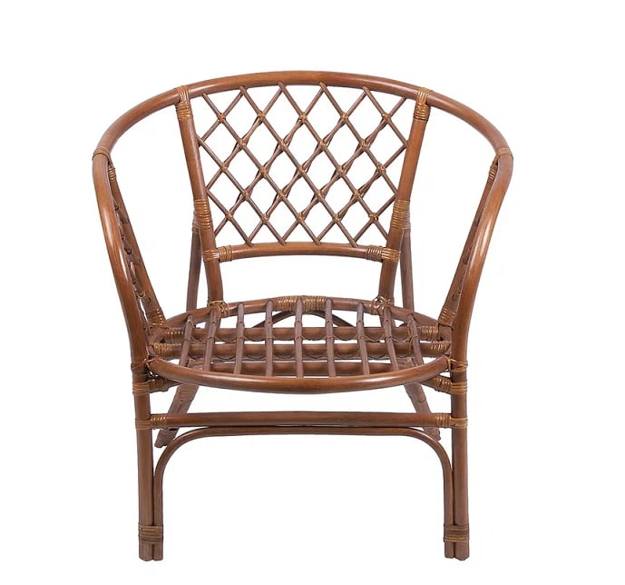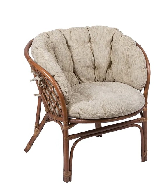 Это кресло из ротанга обладает не только эстетическим внешним видом, но и прочностью. Такая мебель может прослужить долгие – долгие годы. Кресло имеет классическую для плетёной мебели форму, оно устойчиво и очень удобно. Мягкая подушка, покатая спинка, округлые подлокотники – всё располагает для вашего комфорта. Сложное плетение имеет не только декоративную функцию, но и практичную – это делает его прочным и способным выдерживать большую нагрузку.Производитель предусмотрел различные цветовые варианты, благодаря которым ваш интерьер останется гармоничным, даже если основная мебель в помещении не из ротанга.
