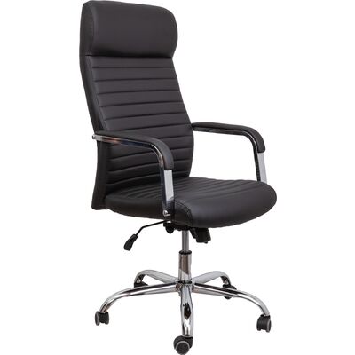Строгое офисное кресло, исполненное в утонченном дизайне. Хорошая эргономика этой модели достигается за счет спинки, повторяющей изгиб спины, удобных стальных хромированных подлокотников с накладками и удобного в использовании механизма Anyfix, который поможет зафиксировать наиболее удобный угол наклона кресла, отрегулировать высоту сиденья и настроить жесткость качания.В качестве обивочного материала используется экокожа в трех вариантах расцветки - коричневый бриллиант, черный и бежевый. Крестовина стальная хромированная.