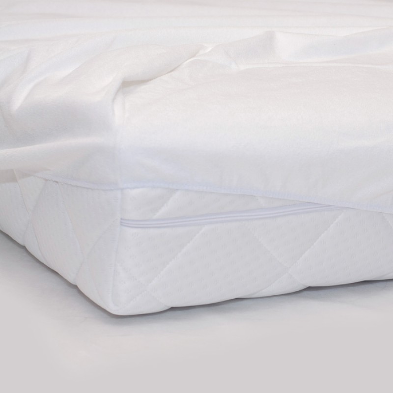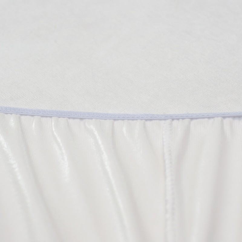 Махровая ткань с водонепроницаемой мембраной. Нежная махровая ткань подходит для детей с первых дней жизни. Тонкий защитный наматрасник практически не ощущается за простыней и не влияет на степень комфорта и жесткости матраса. Резинка по всему периметру обеспечивает надежную фиксацию и простоту эксплуатации..