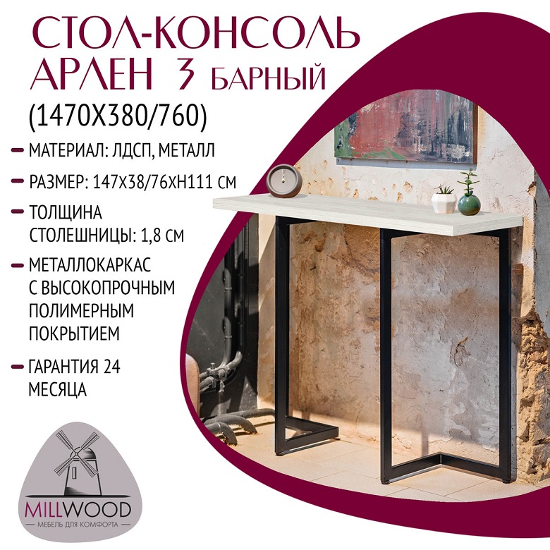 Раскладной барный стол "Арлен" - идеальный вариант для небольшой кухни или гостиной. Вы можете использовать его не только в качестве обеденного стола, но и как консоль в прихожей или любой другой комнате. Сочетание современного дизайна и практичности делает его идеальным элементом для вашего интерьера.Благодаря своим размерам, такой стол не займет много места в вашей квартире. Откидной механизм раскладывания, позволит вам легко увеличить или уменьшить размеры стола.